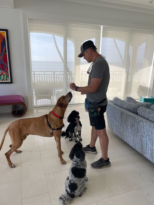 In-home private lessons with an ECA trainer teaching you a reward based style of training right in your living room.